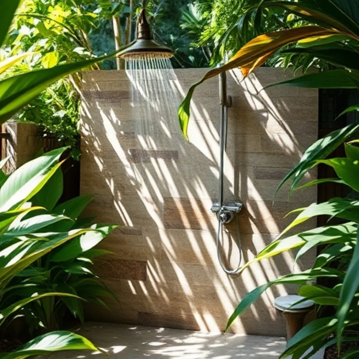Cleanse your body and spirit in our private outdoor shower sanctuary, surrounded by nature and infused with aromatherapeutic elements.